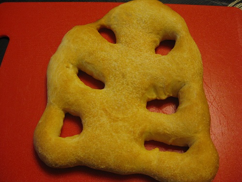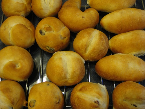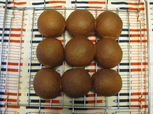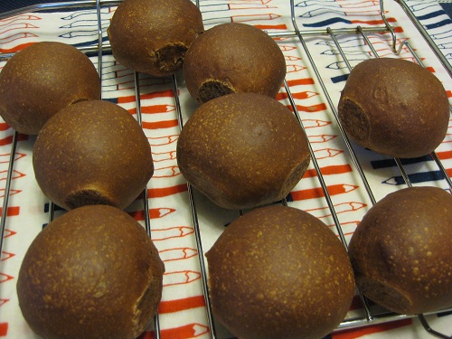 本当はね・・・スクエア型で焼いたので、ちぎりパンにしたかったのに、大き目の型を使ったために丸パンが並んでるだけになりました。